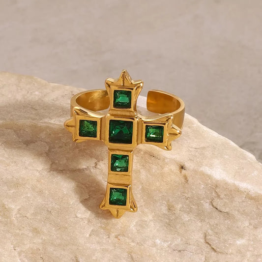 Celestial Cross Emerald Ring