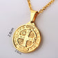 The Saint Benedict Medal is a Christian sacramental medal that is worn to protect against spiritual and physical dangers, particularly those associated with evil and temptation.